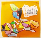 1月 ドリッピングカレンダー 紙に絵の具を垂らし、偶然にできた形を利用してカレンダーに仕立てます☆