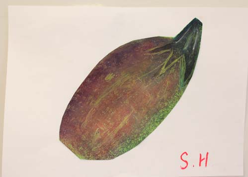 A2色の異なるオイルパステルを重ねて塗ることによる複雑な色彩表現を体験し、