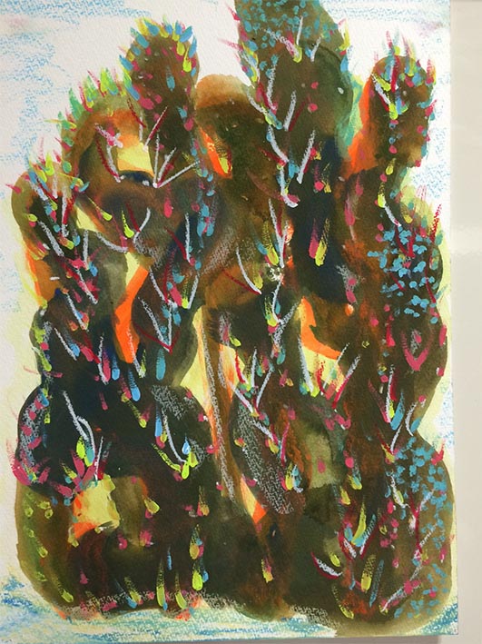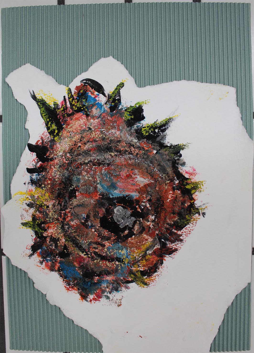 Aオイルパステルの混色による複雑な色彩表現を体験し、不思議で造形的な