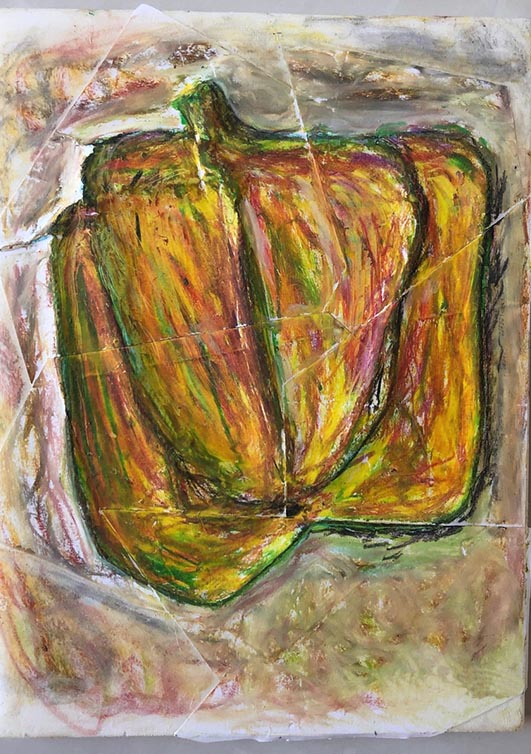 @リンゴの量感画A溶け出す色と形Bししゃもを描く |